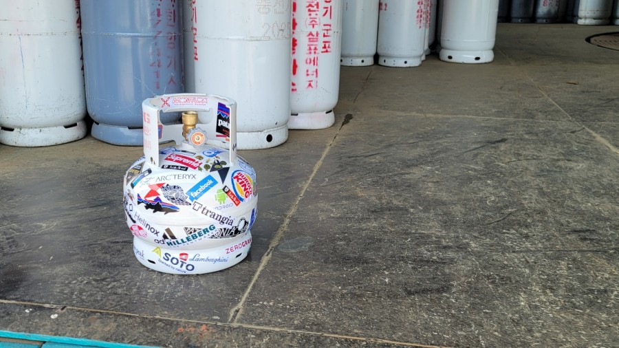 스티커랑 #3KG가스통 을 꺼내왔었어요.