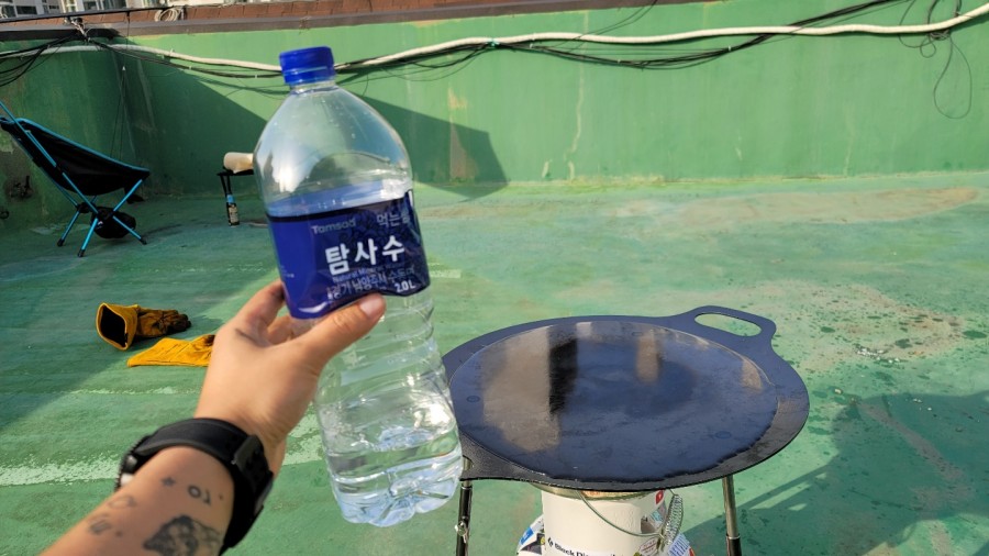 상관없다는 신랑의 말에 2리터 물을 부어줍니다.