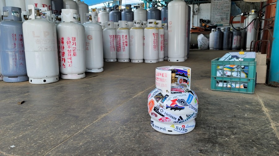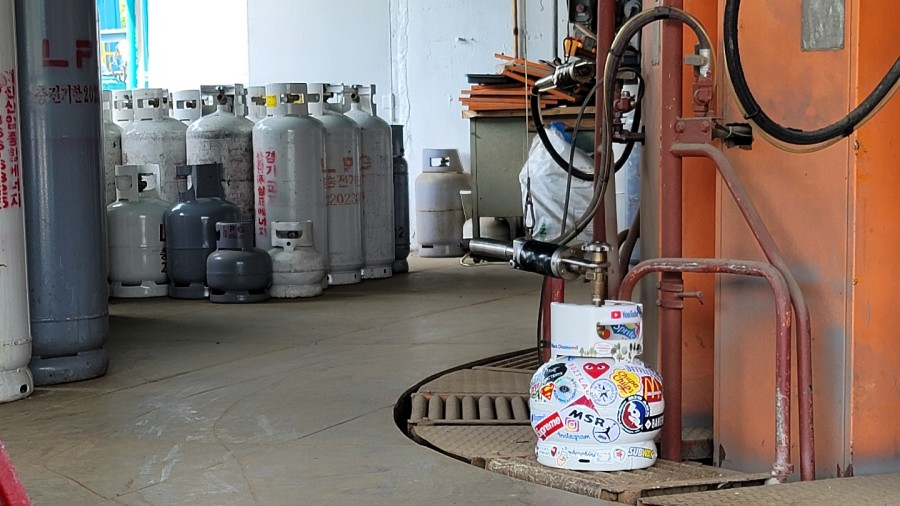스티커랑 #3KG가스통 을 꺼내왔었어요.