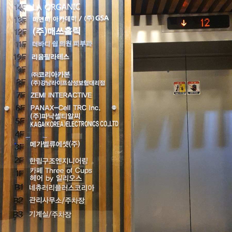 엘베를 타고 올라가서 오른쪽으로 입구가 있어요.