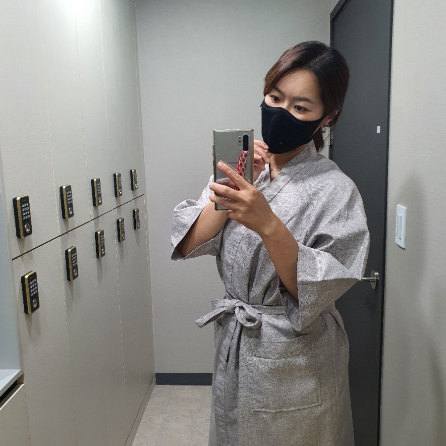 락카룸에서 가운으로 샤샥 갈아입고