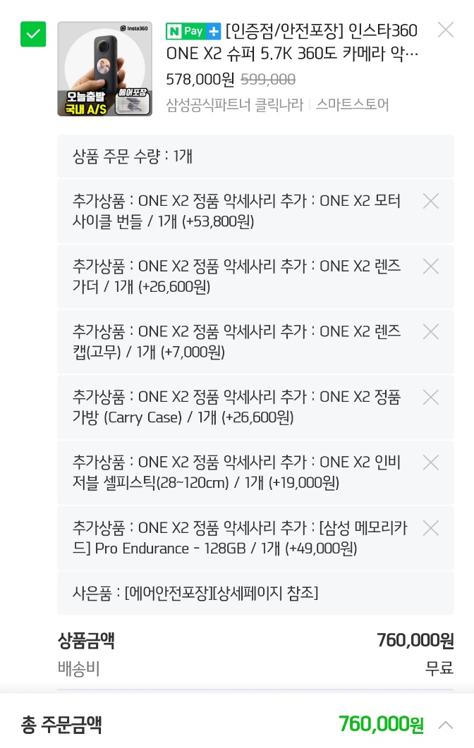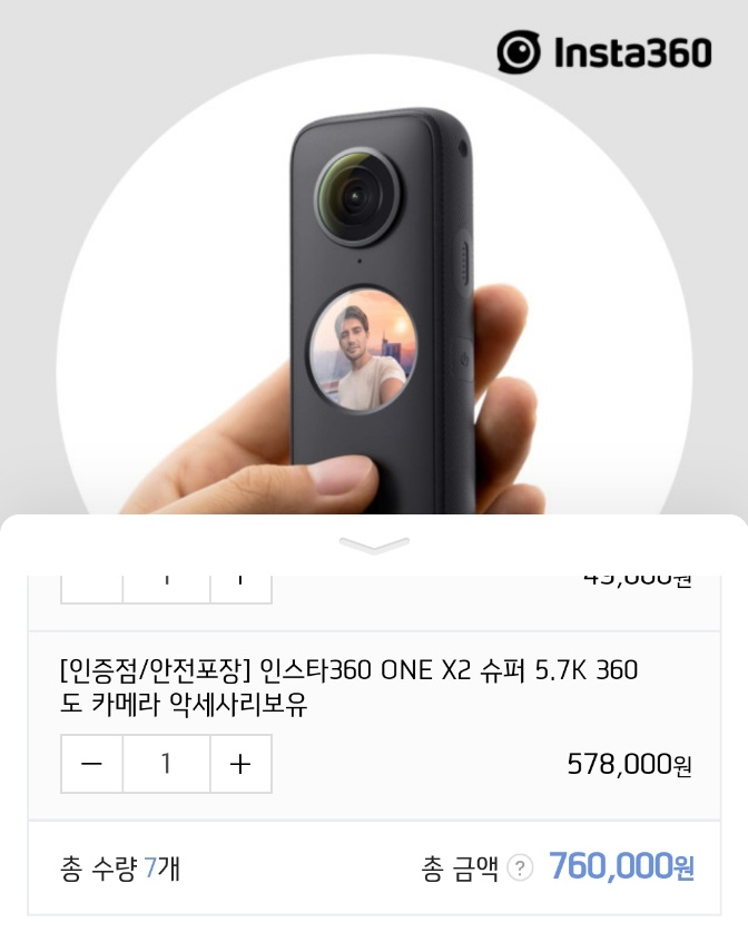예쁜 인스타360 one x2 제품이지만