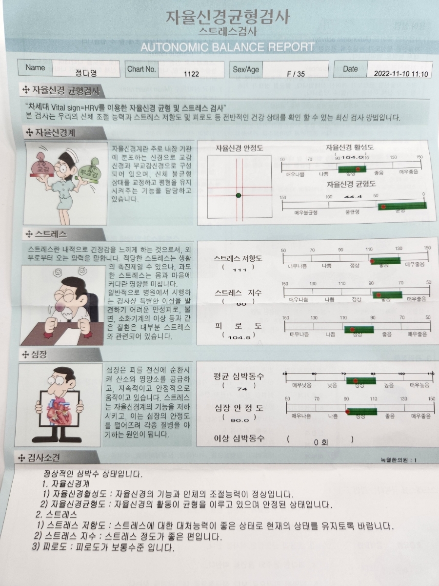 자율신경스트레스검사 / 말초혈액순환검사 / 체형검사 / 인바디검사